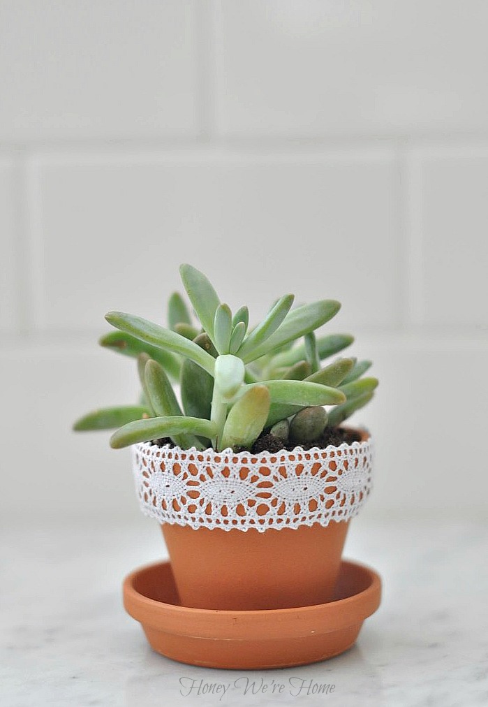 The lace affixes easily to the planter with a simple knot tied in the front.
